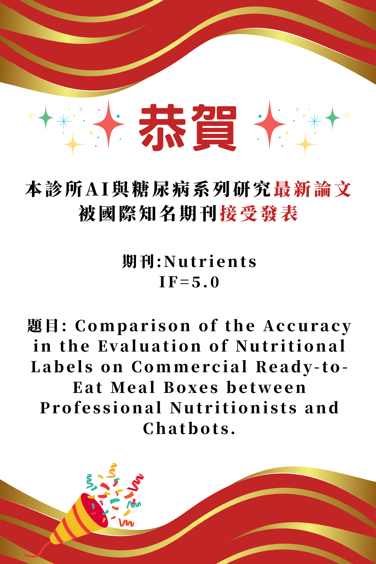 🎉恭賀本診所AI與糖尿病系列研究最新論文被國際知名期刊接受發表🎉